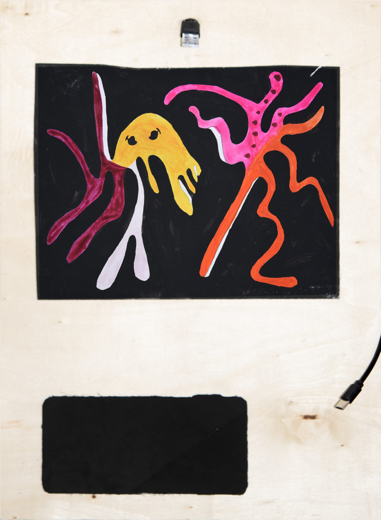 Dreamscape Dreamscape, Aquarelle, gouuache, velours, bois, cable USB C, 2023 Dreamscape, Aquarelle, gouuache, velours, bois, cable USB C, 2023